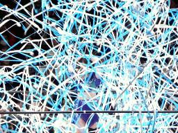終了と同時に白、水色、青の紙テープに包まれる(左写真)。