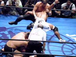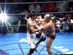 船木の動きには全く不自然さがなく、魅力と大物感の両方を備えたニュースターの誕生、という気すらした。もちろんシングルマッチやったらいろいろ問題が出るんだろうが。全日本と1年間の選手契約を結んだとのことだし、2009年後半の話題の中心になることは間違いない。