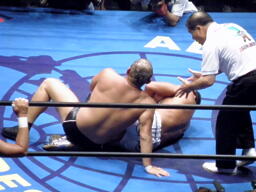 鈴木はまたスリーパー、蝶野今度はSTFで船木を捕獲(左写真)。武藤がロープ。