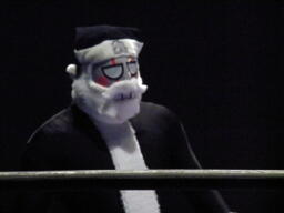そしてサンタの2人をスタンガン葬(右写真)。松井レフェリーは迷わず反則負けを宣告。