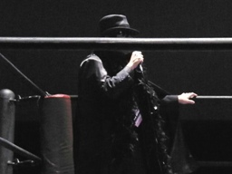 菊タローが締めの挨拶。「えー、近年で一番、尋常じゃない量の鼻血が出ております。こういうアホなことやってても、命は懸かっているということでございます。アキバプロレス、満員でも大赤字!でもみんなが応援してくれる限り、アキバの平和を守るために付き進んで行くぞ!」さらに、すでにニコ動中継ではエンディングが流れているが、会場まで来てくれた人にプレゼントがあるという(左写真)。