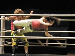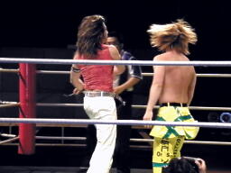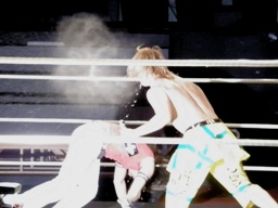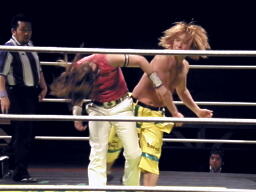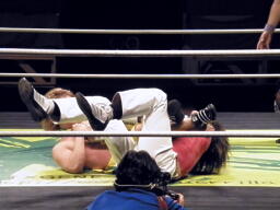千賀回転してフロントネックロック(右写真)、凛音脱出して立ち上がる。ここまでのグラウンドはなかなか見応えあったなあ。凛音はそういうの普段見せてなかったし。