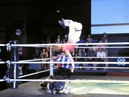 ™z‰¹‚Æ“¡“cA‚Ql‚Æ‚àƒoƒ‰‚ð‚‚킦ƒVƒƒƒ“ƒpƒ“ŽŽQ‚Å“üêB‚µ‚©‚µ‚݂˂҂å‚ñ‚̃Vƒƒƒ“ƒpƒ“‚È‚©‚È‚©ŠJ‚©‚¸B攂ÍHARASHIMA‚Æ“¡“ci‰EŽÊ^jBƒƒbƒNƒAƒbƒvAHARASHIMAƒ[ƒv‚ɉŸ‚µž‚Þ‚ªuƒNƒŠ[ƒ“ƒtƒ@ƒCƒgIv‚ƃ[ƒvƒuƒŒ[ƒNB‚±‚ê‚ɑ΂µƒCƒTƒ~‚Íu‚â‚ê‚æIv‚ÆUŒ‚‚𑣂·B˜r‚ÌŽæ‚臂¢‚©‚ç“¡“c‚ªƒnƒ“ƒ}[ƒƒbƒNAHARASHIMAØ‚è•Ô‚µ‚ătƒ‰ƒCƒ“ƒOƒƒCƒ„[AƒŠƒŠ[ƒXBƒCƒTƒ~us‚¯‚Á‚ÄIv