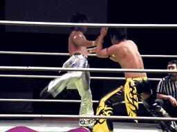 HARASHIMAとKUDO立ち上がりキックの打ち合い(左写真)。