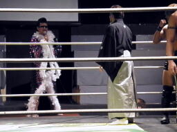 そこにゴージャスな衣装を身に着けたキングKINZOが「BOYZを破壊しに来た」と乱入(右写真)。