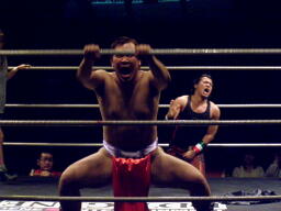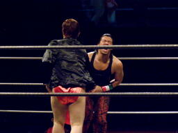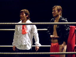 ディーノがトーゴーをキスで足止めする間にルイ様がガッバーナを逆さ押さえ込み(右写真)、カウント3。