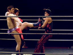 チョップの打ち合いからガッバーナロープに振る、ルイ様ブロックして延髄蹴り(左写真)、ディーノにタッチ。