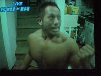 マイケルは思い出したかのように公開契約更改に新木場に向かうと言い出す(右写真)。ライヴじゃなくてニアライヴ?