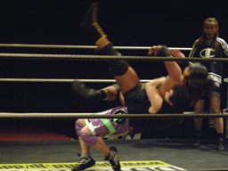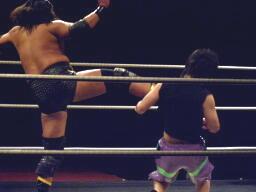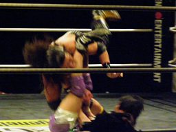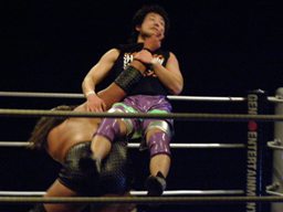 リングに戻るとボディスラム(右写真)、大鷲潰す。
