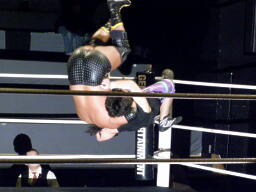 大鷲ブレーンバスター(右写真)からギロチンドロップ、カウント2。