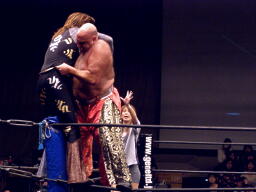 大鷲2人まとめてチョークスラム(左写真)。