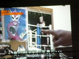 行き先は原島家(HARASHIMAの実家)。「立ち話もなんですから」と上がりこむ大鷲。ディファカップ準優勝の楯や代々のコスチューム(はやぶちゃ含む)の写真が飾ってあった(右写真)。