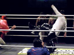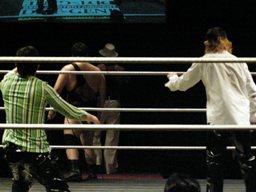 先発はルイ様とガッバーナ。しかしルイ様「決着戦だ。トーゴー出て来い。大将同士で決着付けよう。」とトーゴーを呼び込む。トーゴーこれに応えリングイン。ロックアップ、トーゴーバック取るとスクールボーイ(右写真)、カウント3。え。