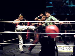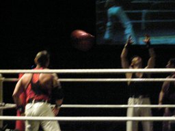 「俺たちはフランス軍、お前らはイタリア軍。俺たちが戦うのに何でプロレスでなきゃいけないんだ?どういう意味か、頭のいいアントンにはもうわかるよな。サッカールールで勝負だ!今日リング下を見たらこれがあったんだ!」とデカいボールを取り出す(右写真)。というわけでサッカールールによる再試合が決定。西側(向かって左)のロープがイタリア軍ゴール、東側のロープがフランス軍ゴール。ただしトップロープ越えは得点にはならずフリーキック。北側・南側にボールが出た場合は出したチームじゃない方のボールで再開。