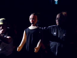 スクリーンには控室映像。ヨシヒコ復活か?いや、猪熊と坂井はヨシヒコを囲んで号泣。アンダーテイカーのテーマも止まる。しかし、その猪熊の肩を叩くもう一本の手(右写真)。