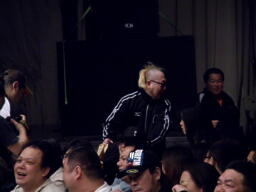 グレート・ムタのテーマが流れ南側客席からニューヨシヒコが登場(左写真)。魔界から蘇ったということか?