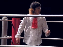 ルイ様豹変し「言ったなアントン!凄いパートナー見つけてやるからな!その時吠え面かくなよ!」(右写真)ルイ様は外に飛び出そうとするがトーゴーに捕まり控室に戻される。外に出るのは禁止なのか?