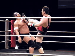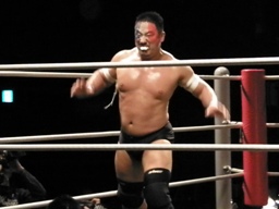 アントンサミング、首投げ(右写真)からストンピング。トーゴーにタッチ。