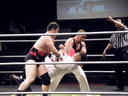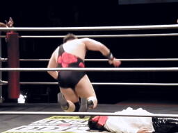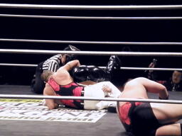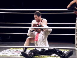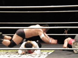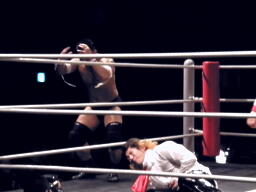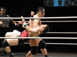 アントンが肩車に、トーゴーコーナーに上ってイタリアンインパクト、ルイ様かわして回転エビに切り返す(左写真)、カウント2。