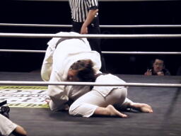 HARASHIMAが上四方固め(左写真)、ポイントになる前にウラノがうつぶせになって脱出。