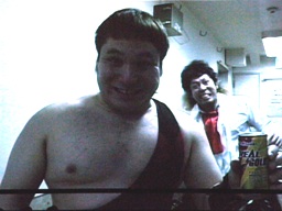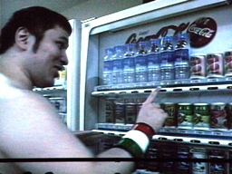 後楽園ホールの自販機で水を買おうとするアントン(右写真)。