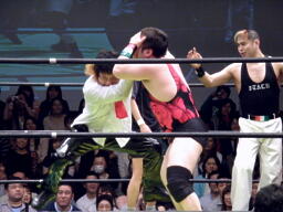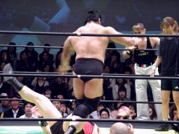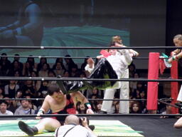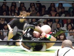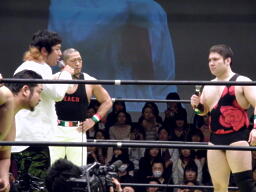 PIZAがSTF、トーゴーがクロスフェースに(右写真)。関本がカット。アントンとルイ様がリングイン。