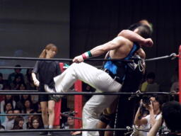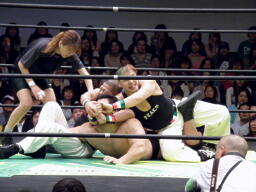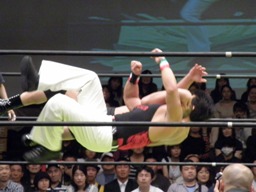 アントン卍固め(右写真)、関本がカット。アントンが押さえてトーゴーがルイ様の顔面にトラースキック。アントンカバー、カウント2。