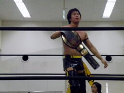 HARASHIMAはKUDOに対しベルトを誇示(右写真)。