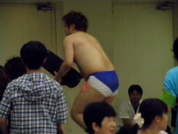 スターレーンに設置してある斜面の上で旭をスケートボードに乗せ、滑らせると下に先回りしてタイツを下ろし旭がディーノの尻に自ら突っ込む形に(右写真)。これは恥ずかしい。旭カウント19で戻る。5分経過。