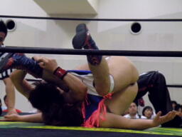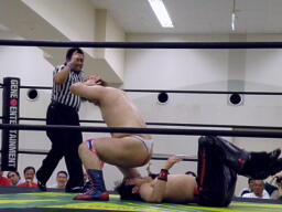 そしてナイトメア(右写真)、タイツをずらして旭に見せ付ける。カバー、カウント2。