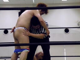 旭耐えるがディーノ乳首をなめてダウンさせる(右写真)、カウント2。