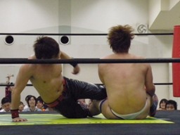 ディーノの入場時に襲われながら一緒に出て来た大日本の佐々木義人(右写真)。