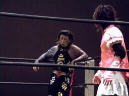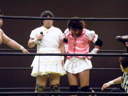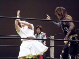 佐藤十字にスイッチ(右写真)、ポイズンギブアップ。ちなみにレフェリーはドングリー藤江だったようだ。