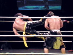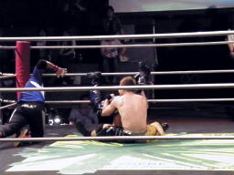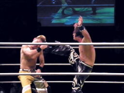 KUDO延髄蹴り(左写真)、コーナーに振って8×4。
