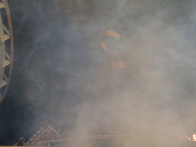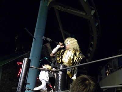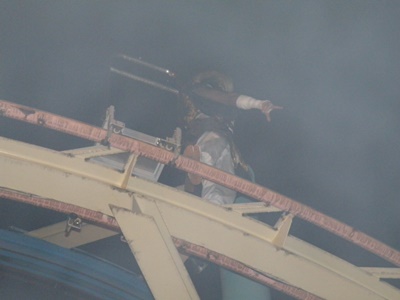 リング上に張られたワイヤーを伝って忍者が登場(右写真)。