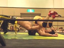 KUDOバズソーキック、高梨かわしてスクールボーイ(右写真)、カウント2。