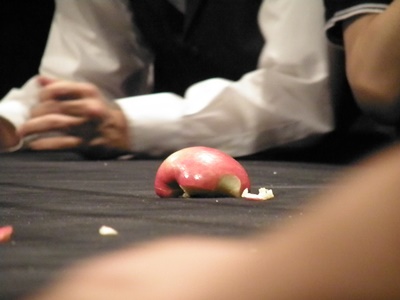 潰されたリンゴ(右写真)。握力自慢の外人レスラーのパフォーマンスと言えばやっぱりリンゴですよね。