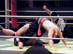 マイケル山嵐流バックフリップ(右写真)、カウント2。