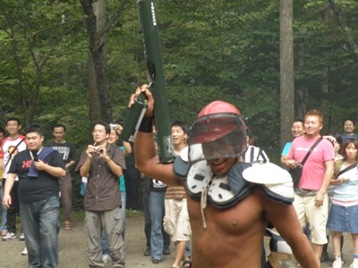 高木は伊橋に火炎放射、伊橋はガンダムシールドでこれを防ぐ(右写真)。
