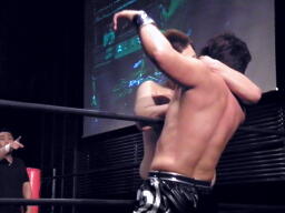 大鷲が佐藤を羽交い絞め、ディーノがキスに行くが佐藤また逃げ、大鷲とはわかっていながら誤爆(右写真)。