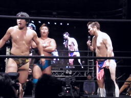 佐藤「どれから行こうか?まずはその今持ってるエクストリームに挑戦させろ。来年の佐藤光留デビュー10周年興行あるかないかわからないけど、そのベルトを賭けてロシア人と総合でやってやるよ。」