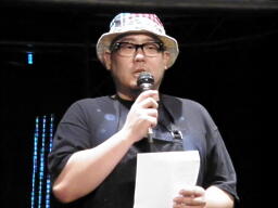 12時50分、高木社長、猪熊ミツボシ店長、大家取締役が「重大発表」のためリングに(右写真)。