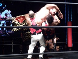 トーゴーとアントンはダブルのブレーンバスターを狙うが大鷲はブロックして切り返す(右写真)。