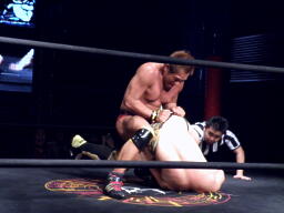 マイケルエルボー、佐藤腕を取ってワキ固め(左写真)、