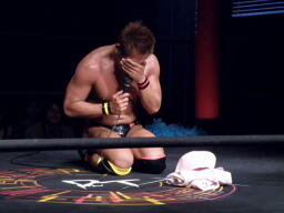 マイケル「この三本勝負に負けたら、変態団を封印するつもりでいました。佐藤光留がベルトハンター×ハンターに入ったのは悔しいが、銀座の地下深くにこの変態グッズは封印したいと思います。」