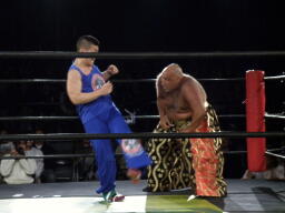 リングに戻るとKYOHEIがコーナーに石川を追い込んでパンチ連打、石川がこれをネックハンギングで吊り上げると3番目に入場の新北京プロレス代表・趙雲子龍がスワンダイブのチョップでカット。さらに石川にソバット、水面蹴り、ドロップキック。KYOHEIも加勢してダブルのトラースキック。