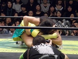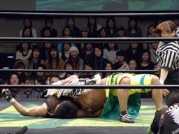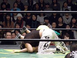 MIKAMI背後に回ってスク〜ルボ〜イ(右写真)、カウント2。