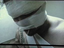 また口から糸が出てきた矢郷さん(右写真)。「風呂に入っても包帯が取れない・・・」