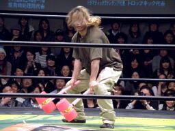 高木がマイケルをピコピコハンマーで乱打(左写真)。