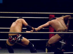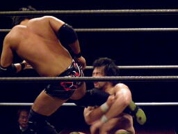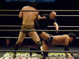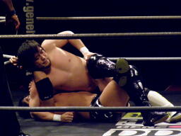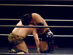 ヒールの豪を見事佐藤が落として万歳、とは行かないなあ。佐藤も試合後和田レフェリーに抗議してたし。試合を遂行することよりアクシデント避けることを重視して欲しいな、このスタイルの試合のレフェリーは。